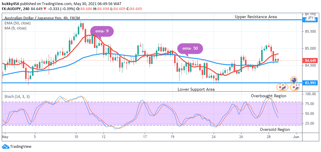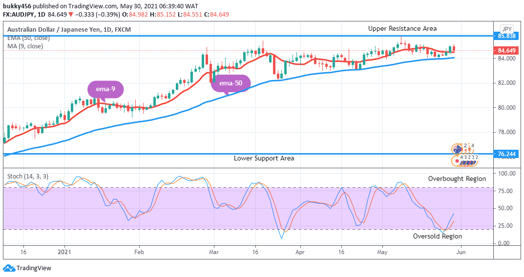 AUDJPY is trading in a bullish trend zone in its long-term outlook. The sustained bullish pressure pushes the currency pair further up at $85.067 in the resistance area during yesterday’s session.