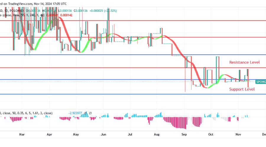 Price is approaching the $0.000196 mark SPONGE Price Analysis – 14 November If the resistance level at $0.000196 is broken, SPONGEUSDT will increase to $0.000330 and $0.000402. If the $0.000196 level holds and the $0.000136 level permits, the price can fall to the $0.000087 and $0.000004 support …