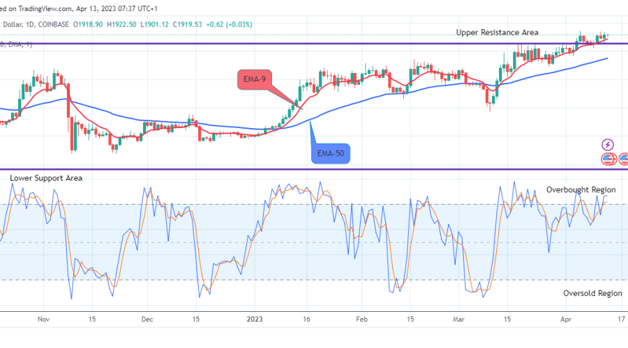 Ethereum (ETHUSD) Price Forecast: April 14The ETHUSD pair now trades at the upper resistance area at the $1922.50 level and remains a buy signal for the coin holders. In case the bulls’ pressure breaks up the resistance level of $1934.00, the coin price may increase further to a $25.00 high trend …
