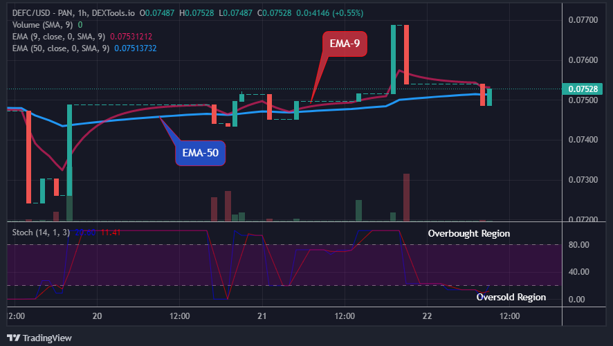 Defi Coin (DEFC) Price Reversal at the $0.07488 Supply Value