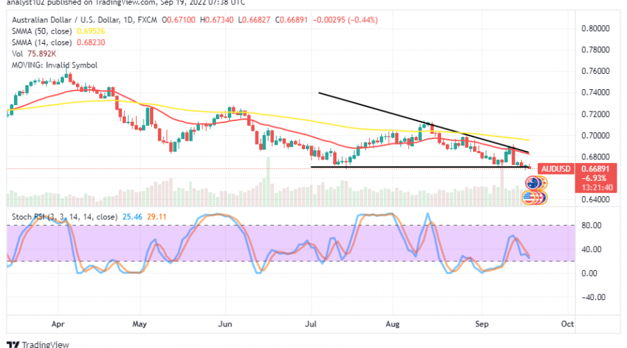 AUD/USD Price Prediction – September 19Selling pressures are intensely coming at a lower-trading spot as the AUD/USD market bears consolidate stances at the 0.6700 line. The currency pair market is at a minute negative percentage rate of 0.44, trading at 0.66891.AUD/USD MarketKey Levels: Resistance …