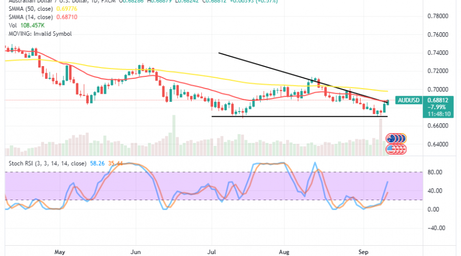AUD/USD Price Prediction – September 12There has been a change of direction against the recent downward-trending forces in the AUD/USD market operations as the fiat pair price has embarked upon a high push. Price is trading around 0.6881 at an average minute percentage rate of 0.57.AUD/USD MarketKey …