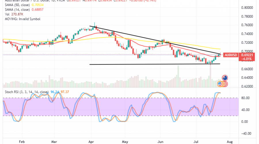 AUD/USD Price Prediction – July 24The AUD/USD market operation averages a 0.7000 resistance line. The few hours have recorded that the price has been trading between 0.6977 and 0.6893 value lines at a minute negative percentage rate of 0.40. AUD/USD MarketKey Levels: Resistance levels: 0.7000, …