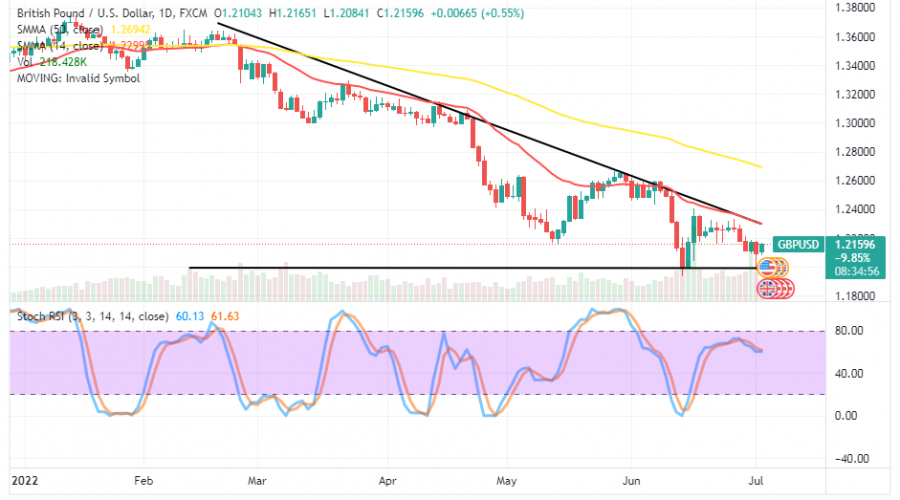 GBP/USD Price Prediction – July 4The GBP/USD market price trades beneath the 1.2300 resistance line. In recent-past operations, the currency pair traded in a range-bound manner that lasted for a few days. Price is trading around 1.2159 at a minimal positive percentage rate of 0.55.GBP/USD MarketKey …