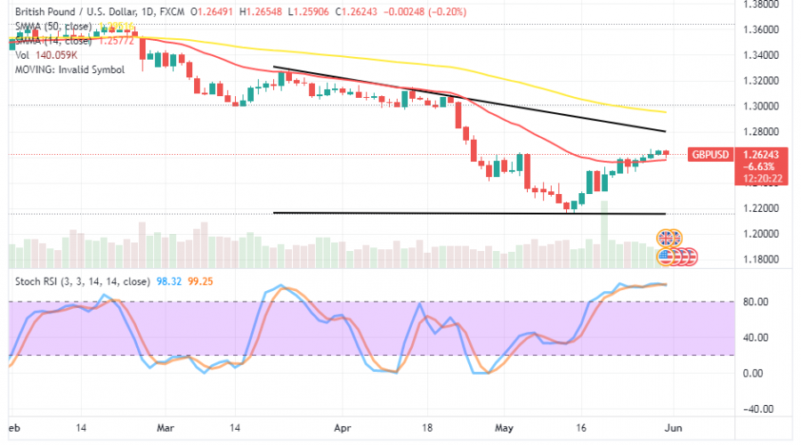 GBP/USD Price Prediction – May 31In the wake of trying not to give a damn easily to a downward-returning trend in the GBP/USD trade operations, the currency pair market springs upward with a less volatility index. It observed price trades between the high of 1.2654 and a low of 1.2590 at a minimal …