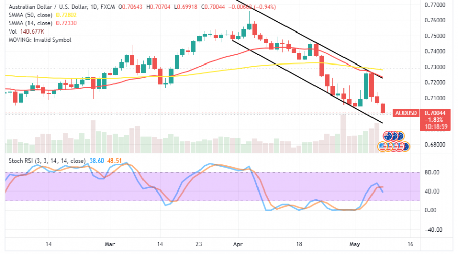 AUD/USD Price Prediction – May 9The AUD/USD market price declines further to a lower-trading spot around the 0.7000 point. The currency pair now trades around 0.7004 at a minute negative percentage of 0.94. It appears the trading activities between the two fiat coins are likely to get a sit in the …