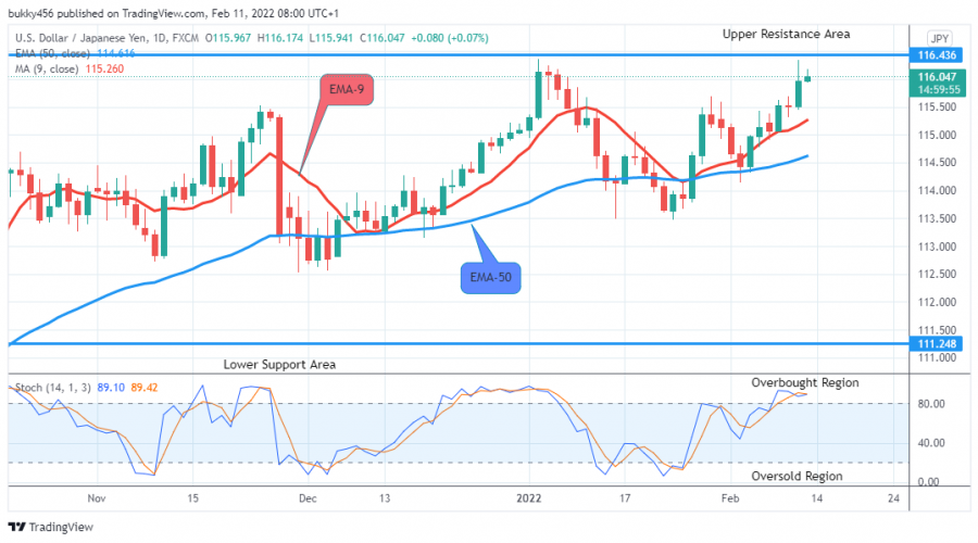 The USDJPY price stays above the EMAs as the bulls took to gain the market momentum. Buyers may put in their aggressive orders at key areas.USDJPY Weekly Price Analysis – February 11An increase in bulls’ pressure may push the market price of USDJPY further to the $116.352 resistance level.USDJPY …