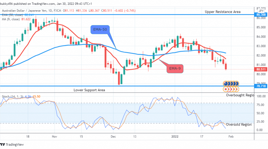 The price bars are below the moving averages which makes it capable of falling to the downside.Selling may be considered at the key areas.AUDJPY Weekly Price Analysis - January 30Further increase in the bear’s pressure may break down at $80.271 level and this may decrease the price to $78.887 and …