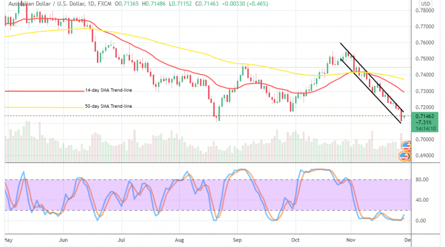 AUD/USD Prediction – November 29It observed that the AUD/USD price lately averages the low line at 0.7100. The currency pair market trades around 0.7146, bagging a smaller positive percentage rate of 0.46.AUD/USD MarketKey Levels:Resistance levels: 0.7200, 0.7300, 0.7400Support levels: 0.7100, …