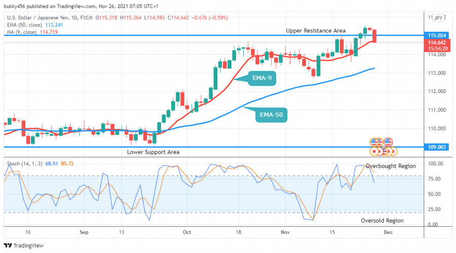 The long-term and the medium-term outlooks are both in an upward momentum; price now trades above the EMAs. Overall, the buyer seems to be in control of the market above $115.358.USDJPY Weekly Price Analysis – November 26 It is necessary to verify if the price will hold at the $115.304 support level …