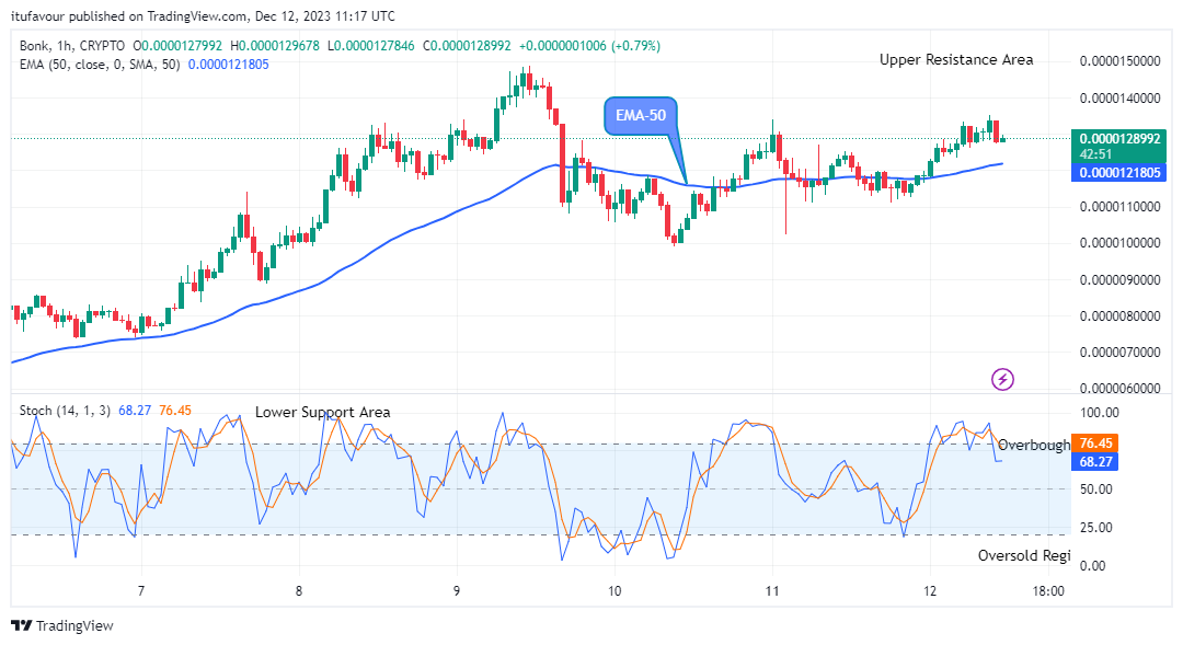 Furthermore, the price of BONKUSD may rise further if the bulls can push harder; if this is achieved, the price may rally up to the $0.0000150 resistance level in the coming days and beyond in the long-term time frame.