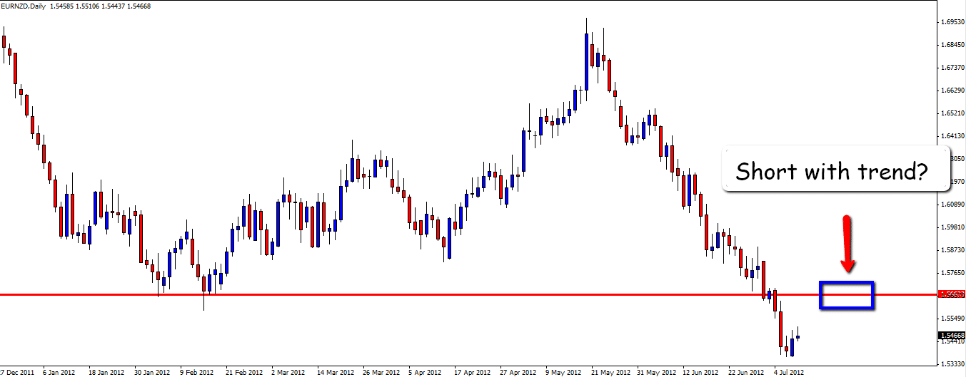The EURNZD has been in a solid downtrend in the recent weeks. The best play for Price Action traders is to look to short with this trend in their favour.