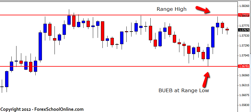 After the high of the BUEB was taken out, price flew higher to now be sitting just under the top of the recent range. This move higher gave the traders who entered this setup a chance to take profit or protect their capital.