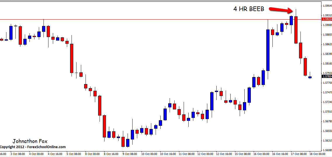Once the low of the BEEB was broken, price smashed lower to break the recent support levels. The traders who entered this setup have now been given a chance to take profit or at the minimum protect their capital.