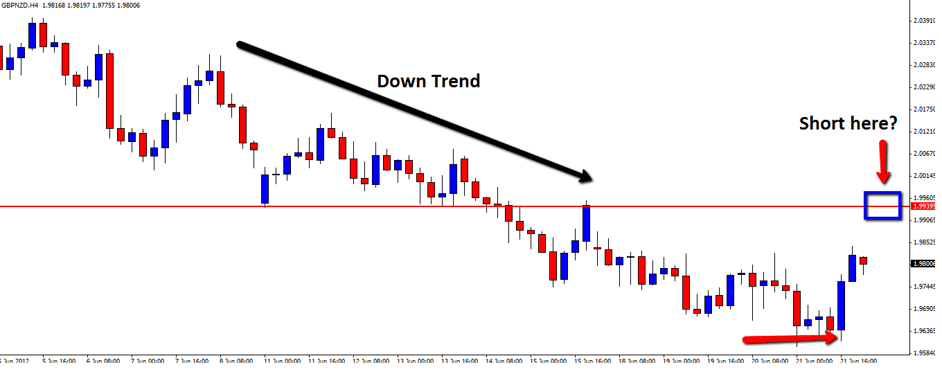 Price has now moved higher and is moving closer into over head resistance. For traders who prefer to trade with the trend the resistance level closely above could be a good area to look for bearish Price Action to get short.
