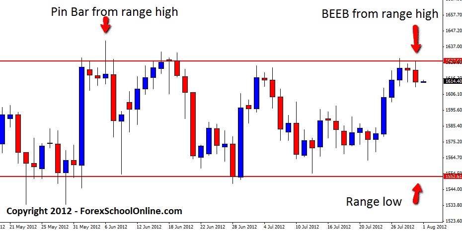 This BEEB could see price fall back lower if the lows are taken out and the bears gain control. If however price breaks higher from the BEEB the range high would be broken and we would be looking for new moves higher.