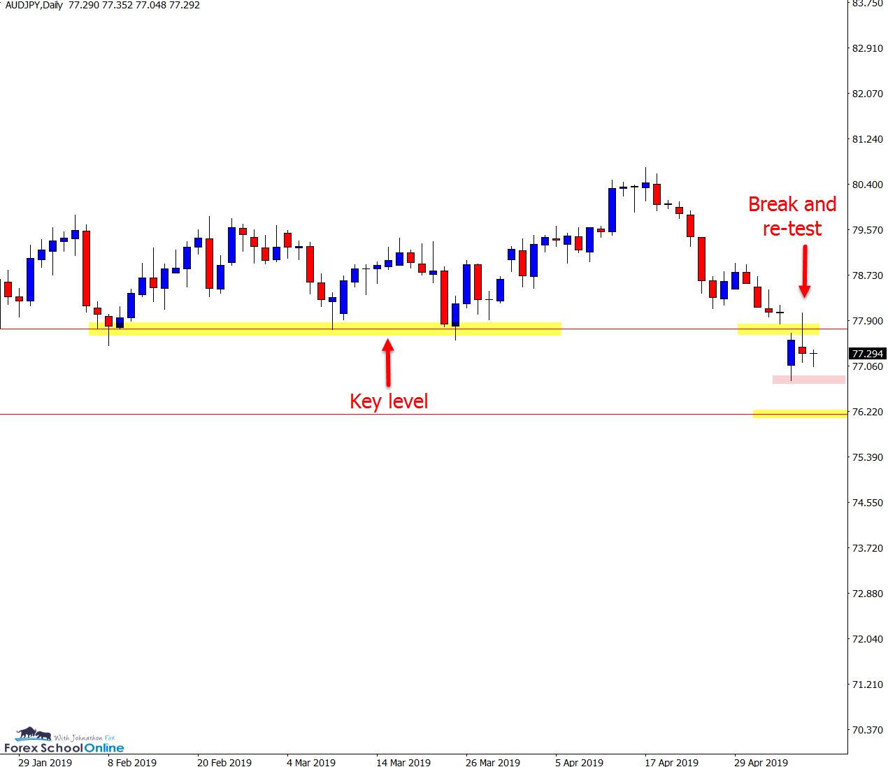 Price has since smashed below this level and then quickly retraced, forming a rejection candle of the old support and new resistance.