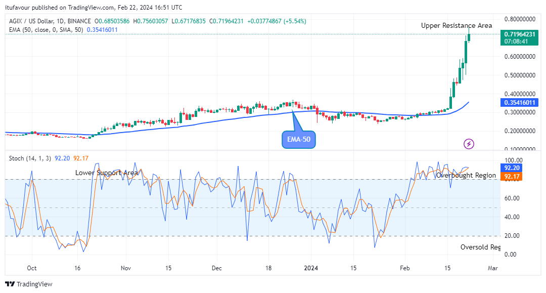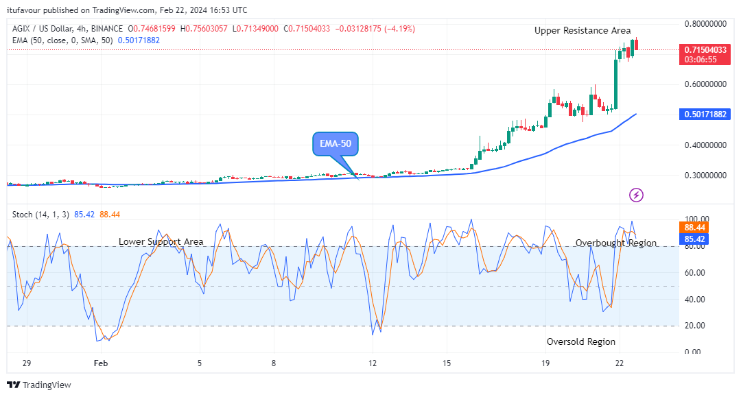 Further, should the bulls prove stronger and the coin price sustains above the $0.7501 high level, the potential rally could surge higher to hit the $0.800 upper resistance level and beyond as the AGIXUSD price remains strongly bullish in its medium-term outlook.