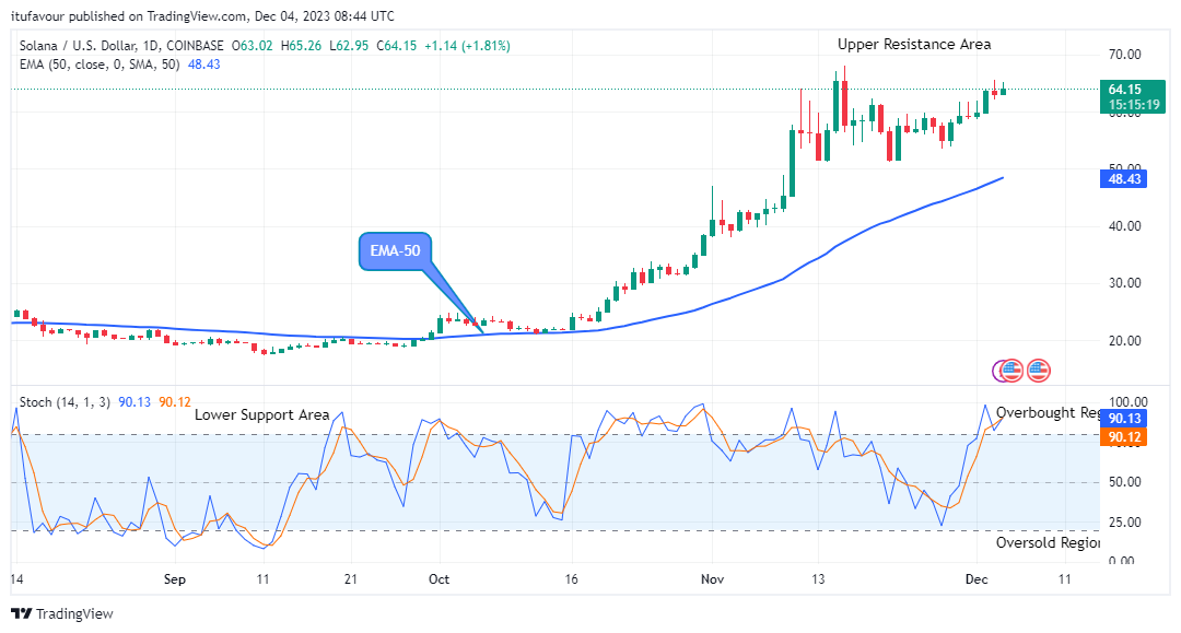 The bull race caused a rise in the price of Solana from a $63.02 level to a $65.26 high value above the moving averages. This, however, will create a strong area of interest for the buy investors.