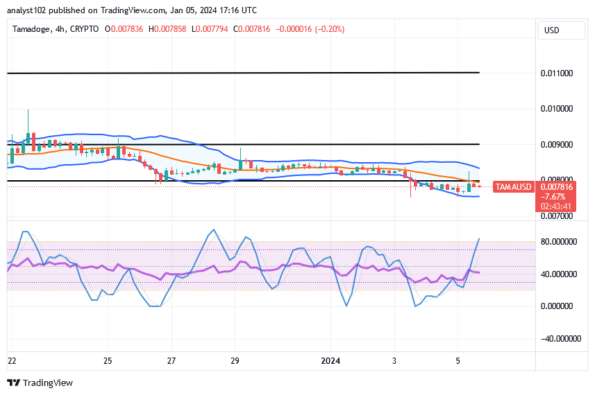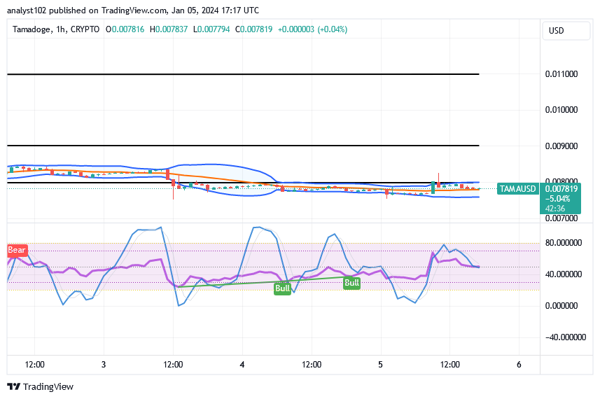 As there has been a consistent slight force succumbing situation by bulls to bears in the market operations of Tamadoge/USD, the crypto-economic price has been observed to be lowering its momentum around the crucial trad spot of $0.00800, floating a hike signal above the support line of $0.00700 at this moment of technical analysis.