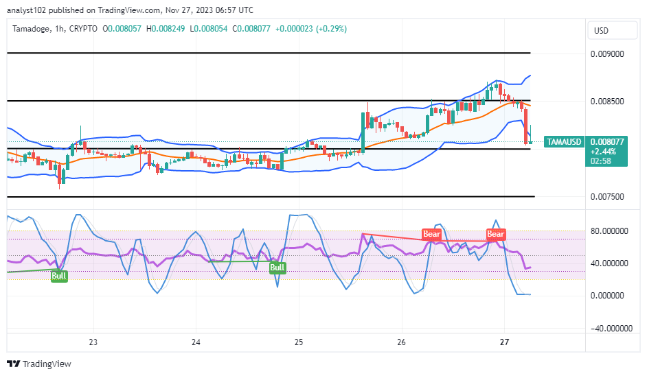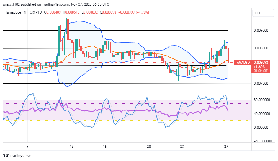 As of this technical piece, the TAMA/USD market is presently heading down against the trend line of the middle Bollinger Band to possibly reach the point of $0.07500 as the crypto market reverses, drawing in spiking traits.