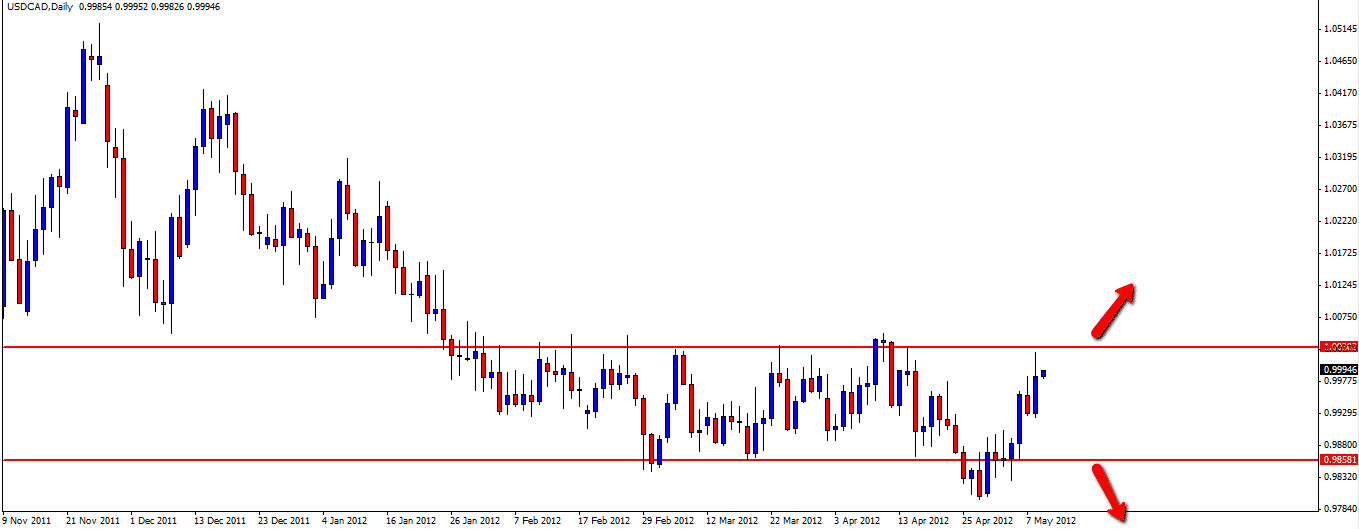 The USDCAD is stuck in a range and has been for the past few months. Price during the last session went higher and tested the extreme highs of this range.