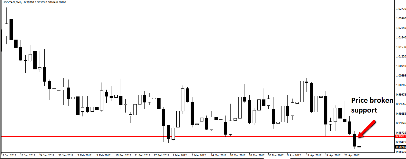 The USDCAD has overnight broken a very key support area. This breaking of support could lead to the next leg lower.