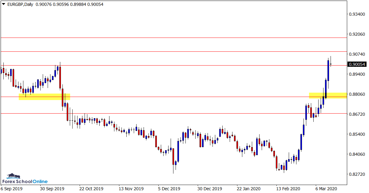 The follow through that had been present in other pairs also carried across to this market once price broke out higher and made a substantial close above the resistance level.