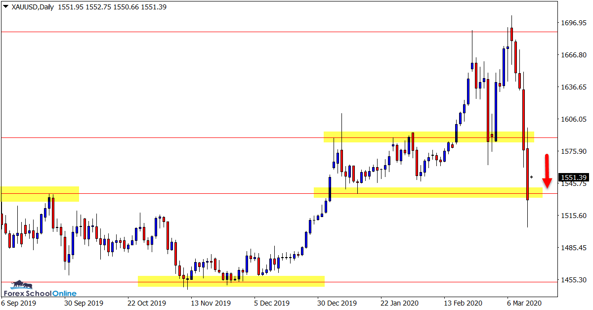 This has been one of the most interesting markets of the lot. It is also one of the markets that has thrown many traders out of whack. Whereas Gold will often rise in times of uncertainty, this time it has been crunched lower just like many other world markets.