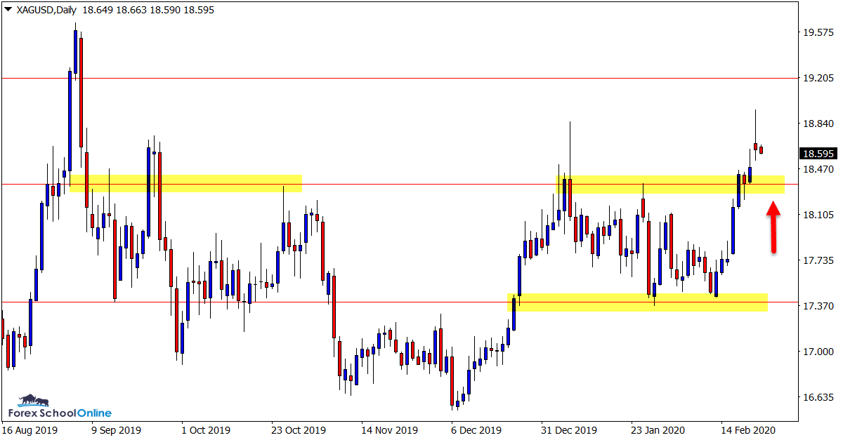 In last week’s trade ideas we were watching this market for a potential breakout through the daily chart resistance, similar to what we had been looking for on Gold.