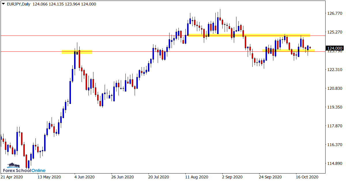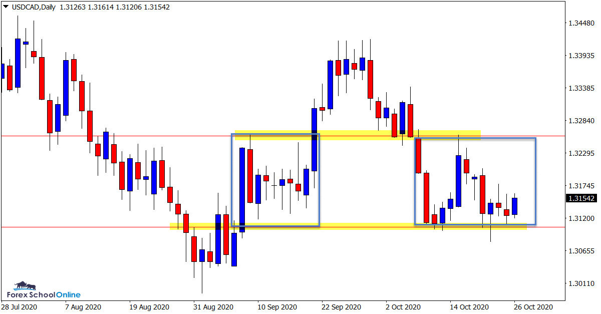 As the daily chart shows; price was previously trading within a pretty clear box pattern and now once again we have a very similar box pattern playing out.