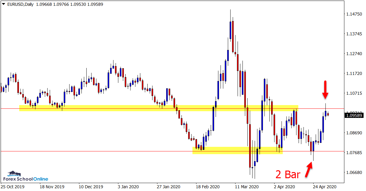In last week’s trade ideas we were looking at the 2 bar reversal and what would happen around the major daily support level that had just been tested.