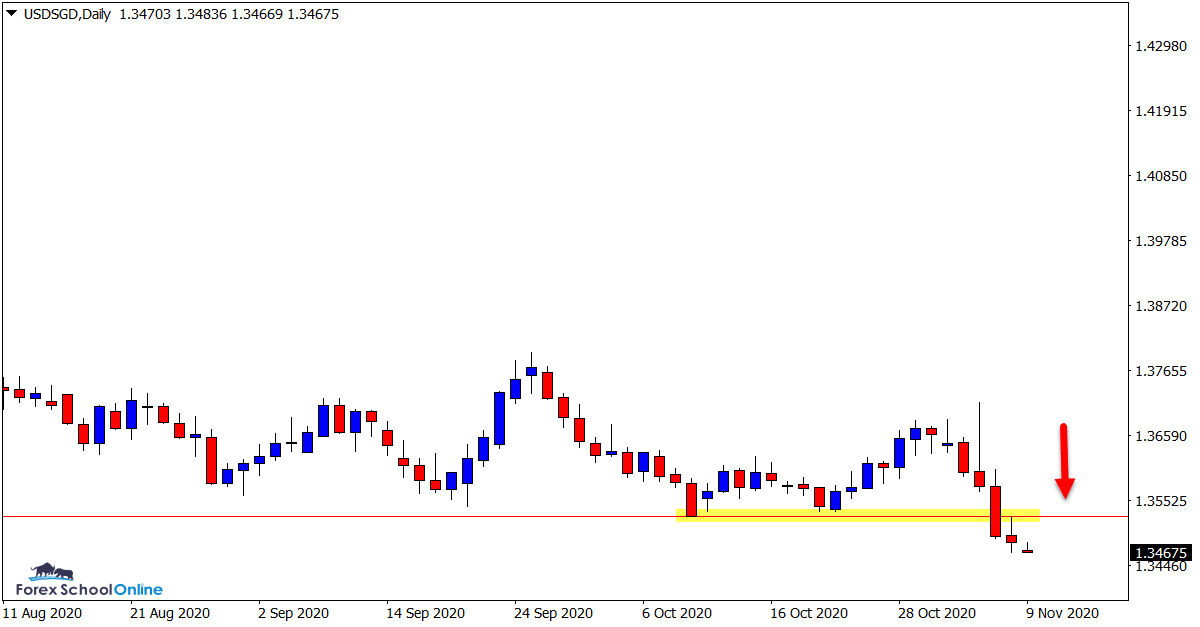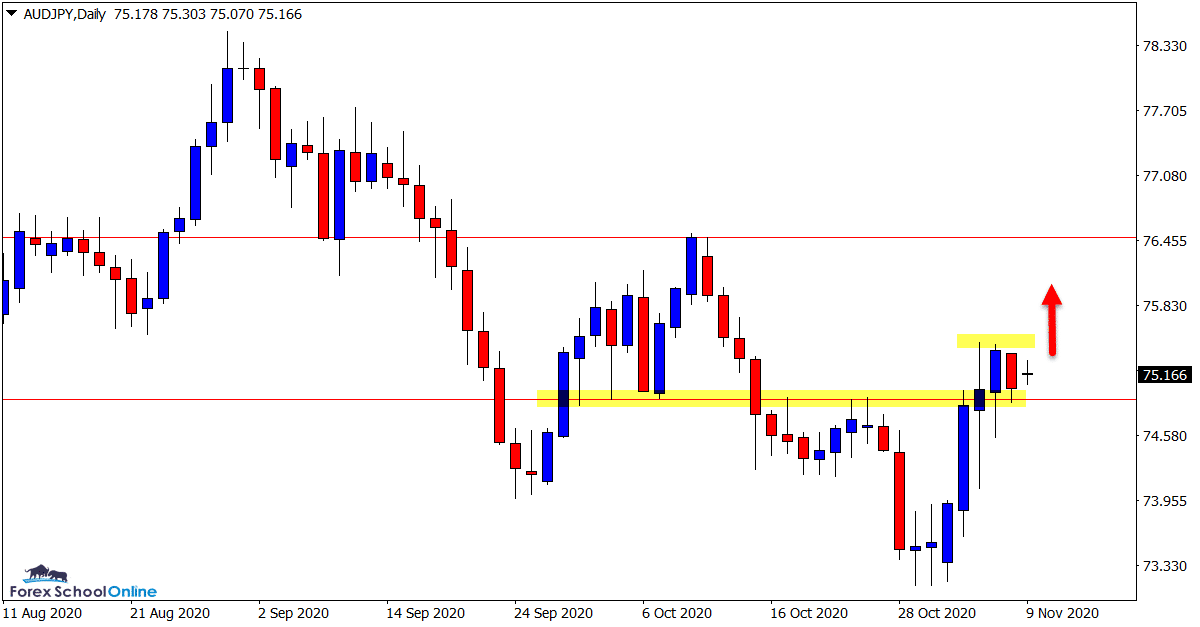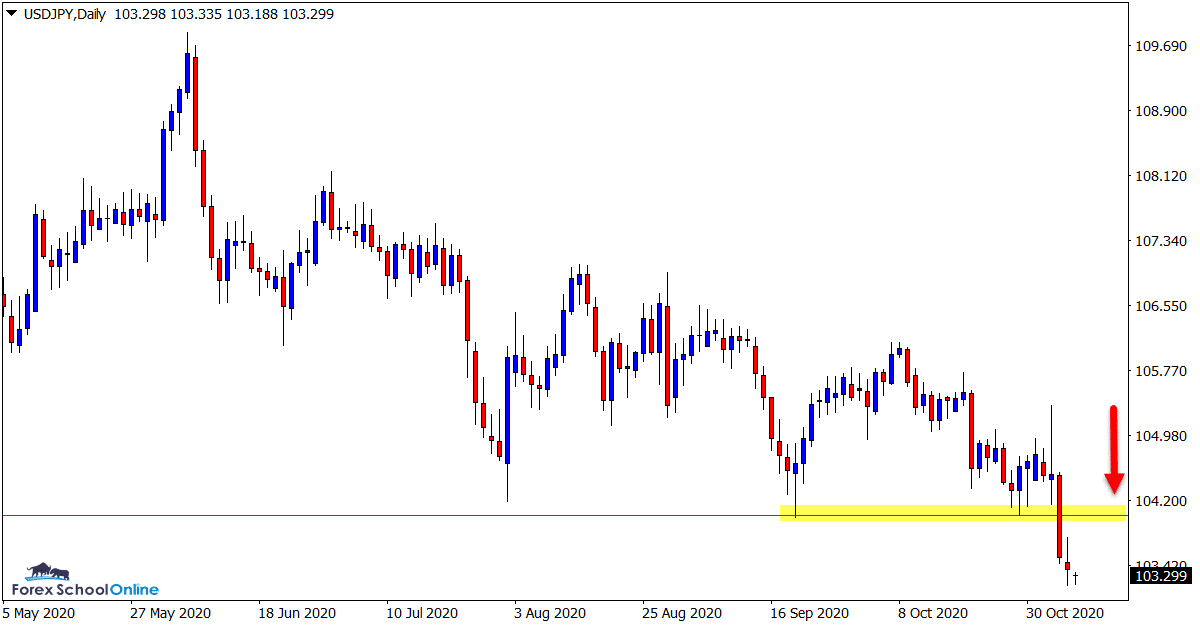 Just like the USDJPY did also, this pair broke through a recent strong daily chart support level.